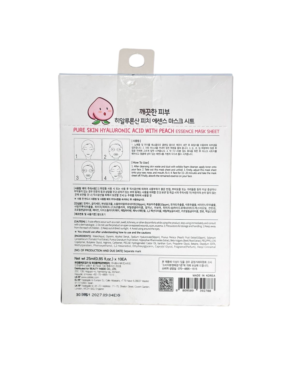 Hyaluronic Acid with Peach Essence Mask Sheet